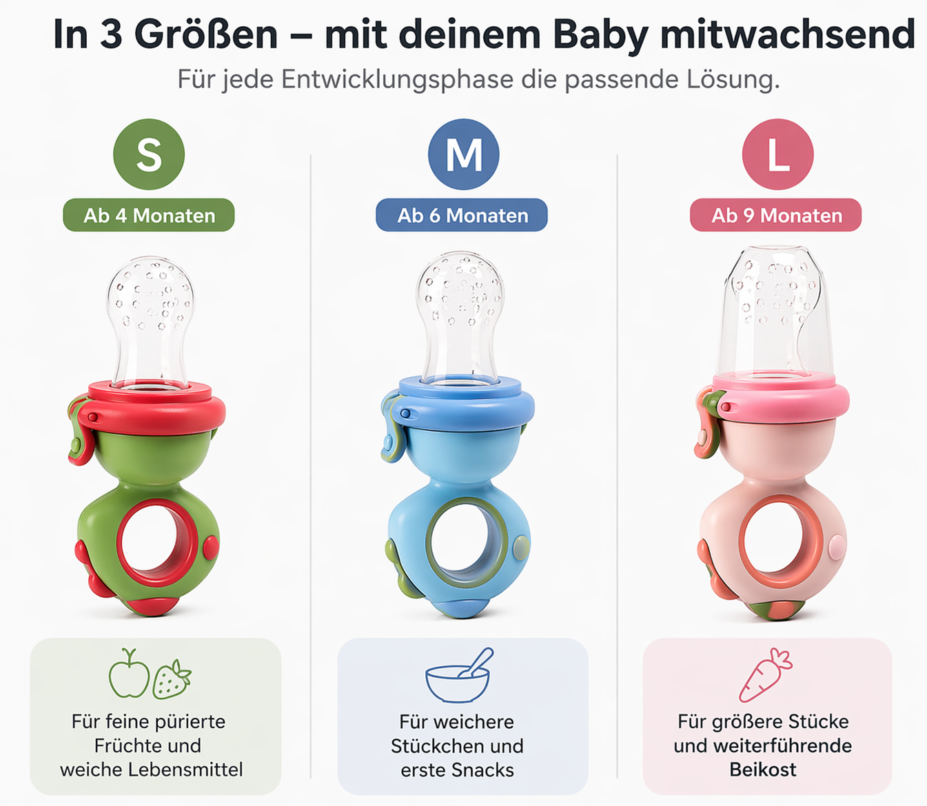 NinoBite wächst mit - dank 3 Größen für jede Entwicklungsphase.